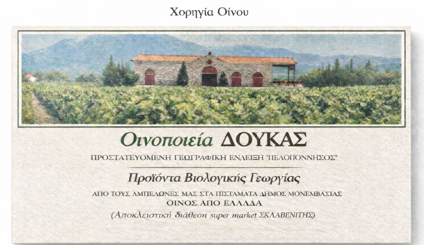 Ευγενική Χορηγία Οίνου: Οινοποιείο ΔΟΥΚΑΣ, προϊόντα Βιολογικής Γεωργίας, αποκλειστικά στον Σκλαβενίτη.